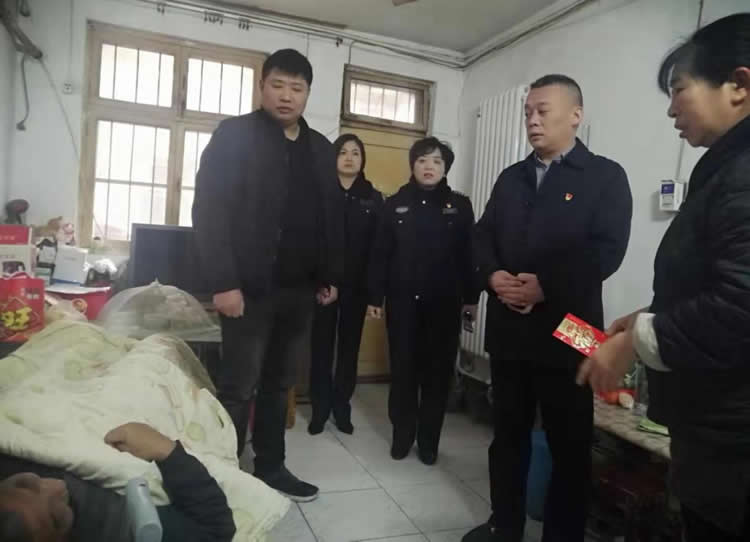 情真天地暖,意濃御天寒。新年伊始,開(kāi)封市保安服務(wù)有限公司深入開(kāi)展幫扶濟貧工作,讓困難職工家庭過(guò)一個(gè)溫馨祥和的春節。 2020年1月17日,公司黨支部書(shū)記、董事長(cháng)、總經(jīng)理孫國杰、李梅副總經(jīng)理、劉閱華副經(jīng)理、梁歷副經(jīng)理、黃志強副經(jīng)理等領(lǐng)導分成三組前往16戶(hù)困難職工和保安員家中,向他們表示新年的祝福和問(wèn)候,并送去大米、面、食用油慰問(wèn)品及慰問(wèn)金。