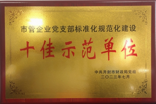 8月10日,在市財政局召開(kāi)的市管?chē)衅髽I(yè)黨支部標準化規范化建設驗收表彰大會(huì )上,我公司黨支部榮獲“開(kāi)封國企黨建十佳示范支部”稱(chēng)號。