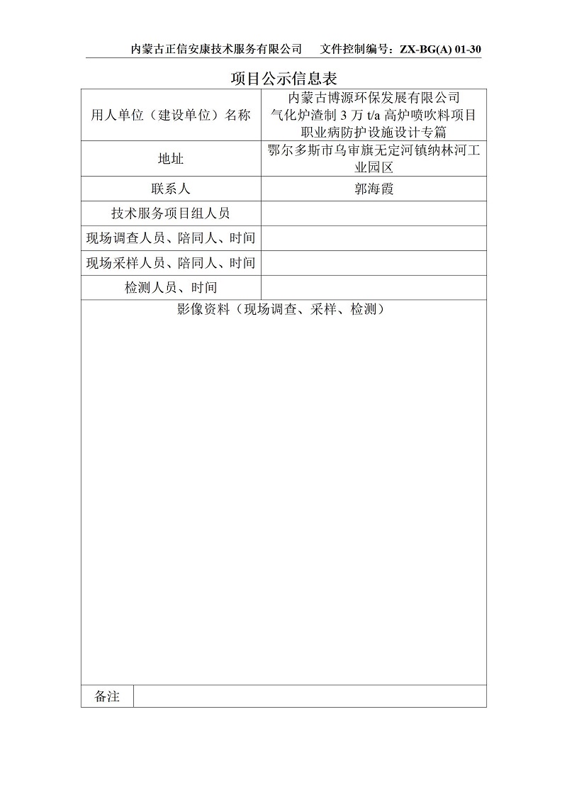博源環(huán)保氣化爐渣專(zhuān)篇項目公示信息表
