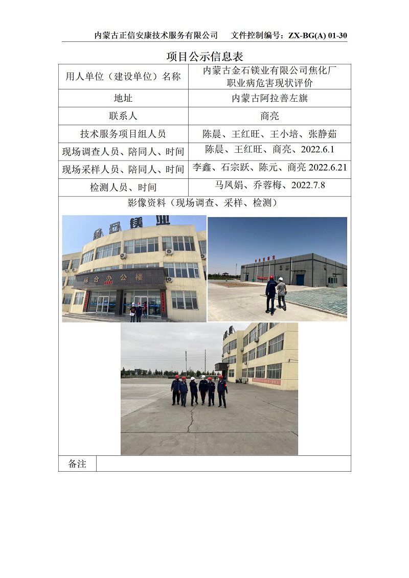 金石鎂業(yè)(焦化廠(chǎng))項目現狀公示信息表