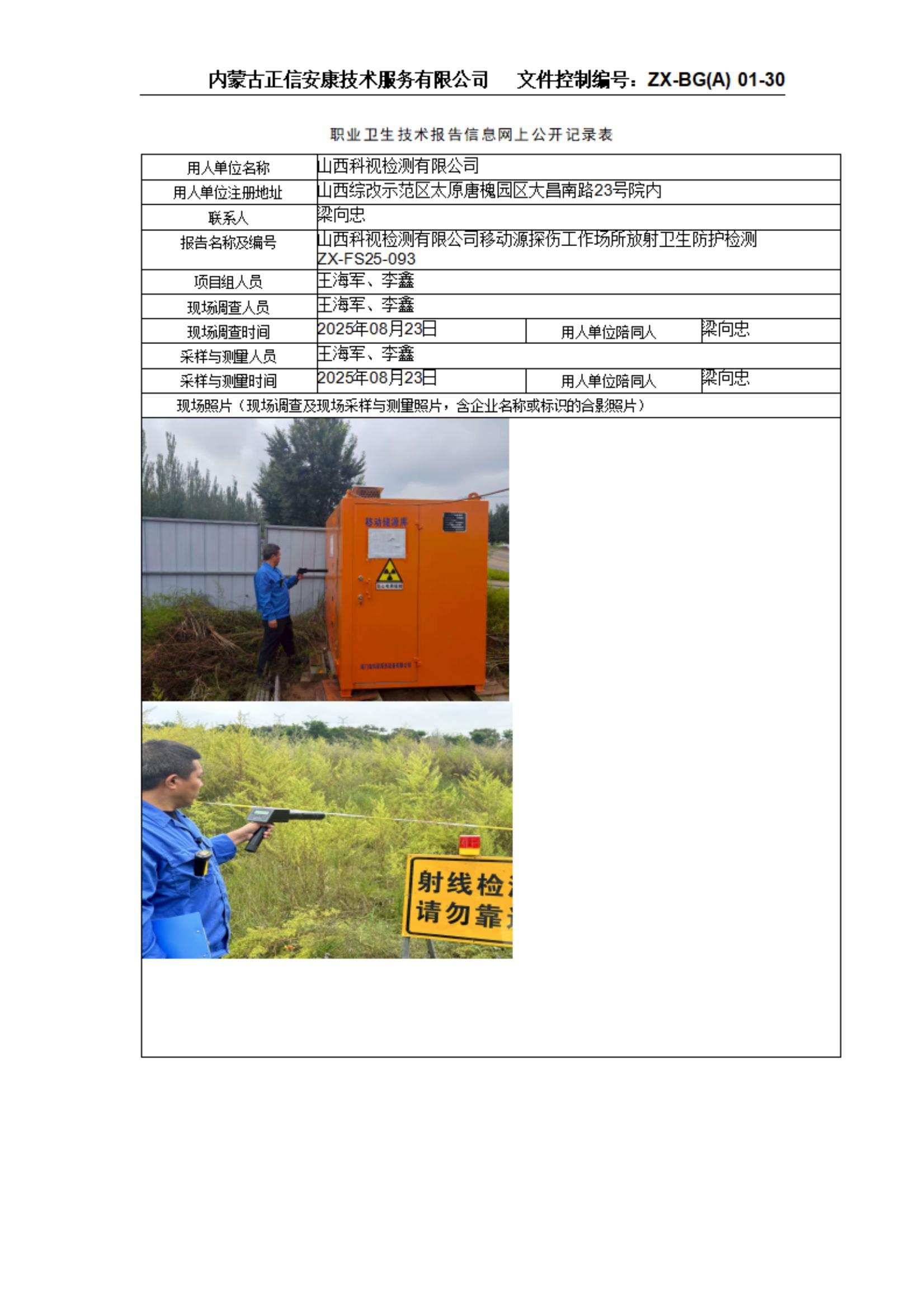 山西科視檢測有限公司移動(dòng)源探傷工作場(chǎng)所放射衛生防護檢測
