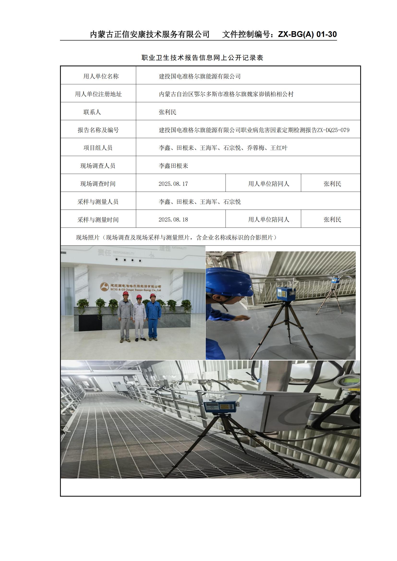 建投國電準格爾旗能源有限公司職業(yè)病危害因素定期檢測