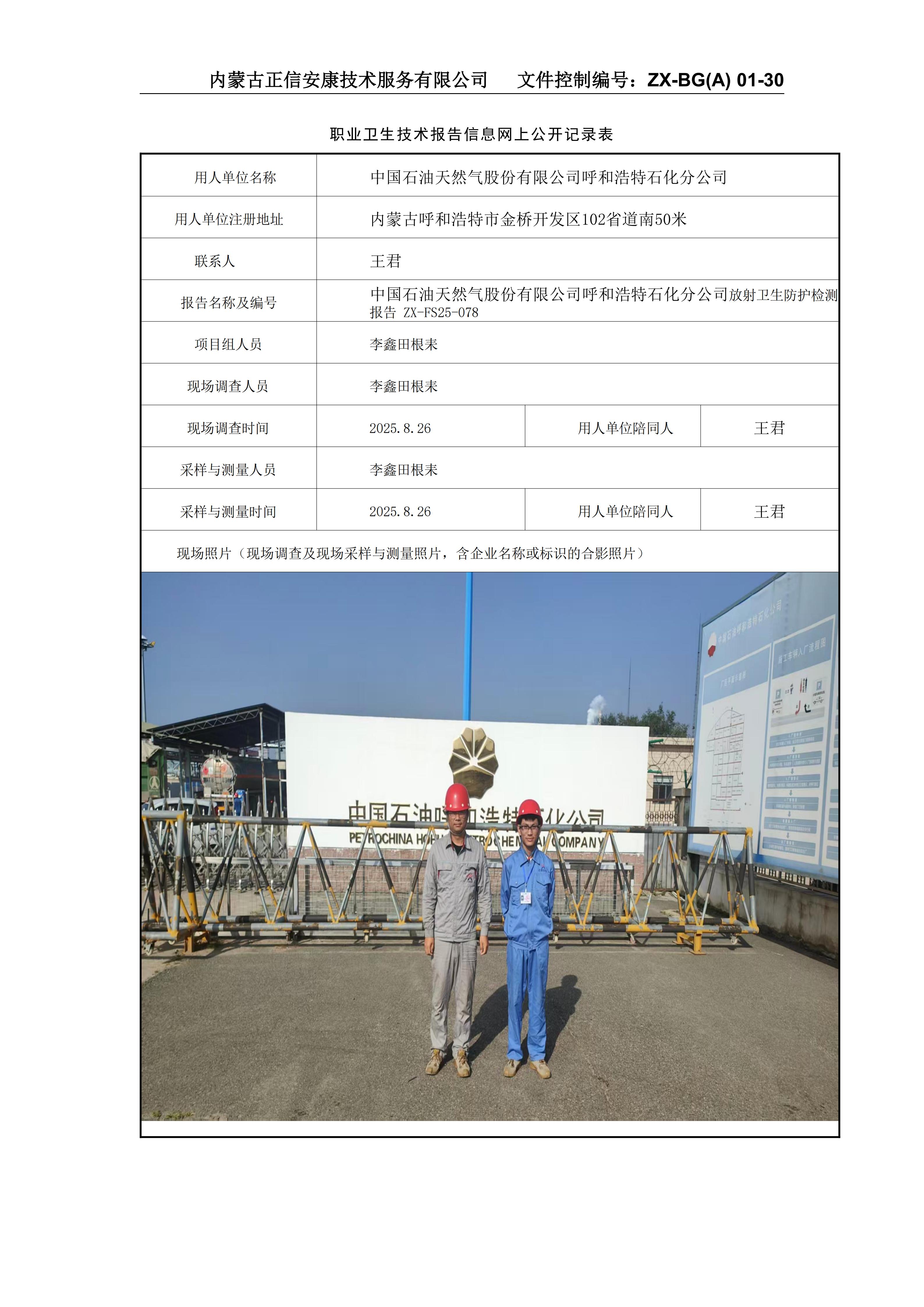 中國石油天然氣股份有限公司呼和浩特石化分公司放射衛(wèi)生防護(hù)檢測(cè) 報(bào)告