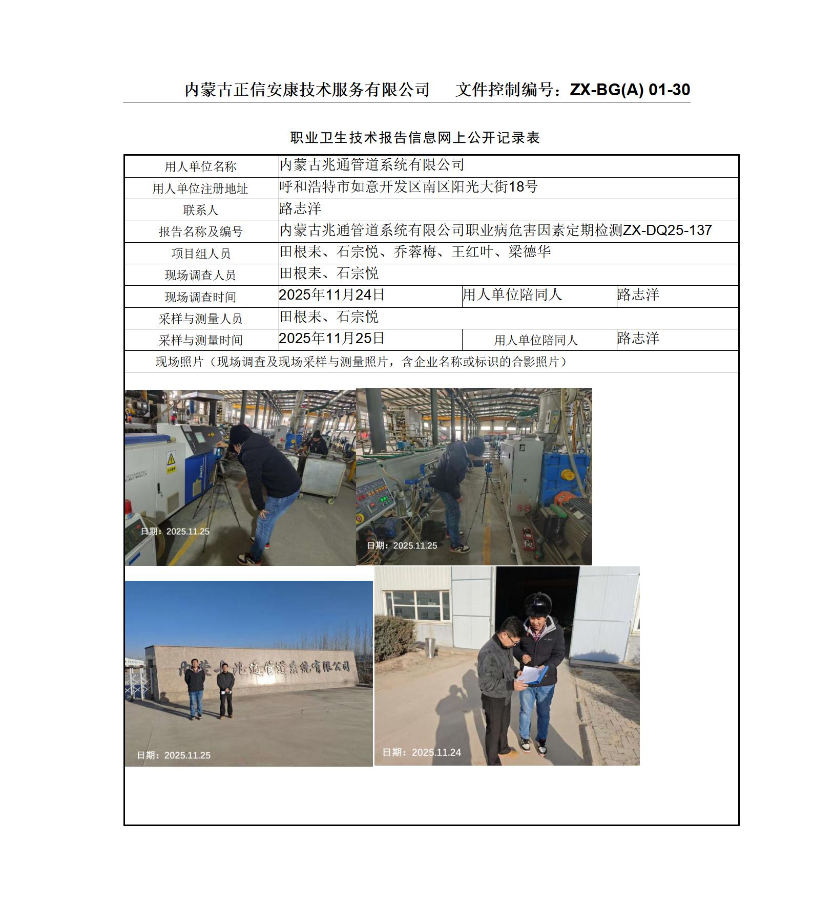 內(nèi)蒙古兆通管道系統(tǒng)有限公司職業(yè)病危害因素定期檢測